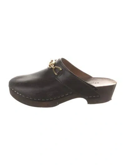 Celine Leather Mules By Hedi Slimane Black Triomphe Round-Toes with Chain-Link Accents Designer Fit: This style typically runs a half size large. Unfortunately, due to restrictions, this item may not be eligible for shipping in all areas. | Celine Triomphe Leather Mules in Black, Women's IT 38 | 8
