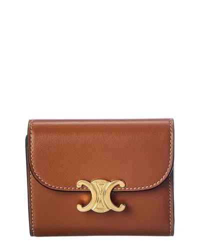 CELINE Triomphe Small Compact Leather Wallet In Brown