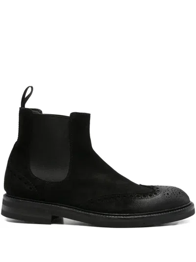 CENERE Elasticated-panel Brogue Chelsea Boots In Black