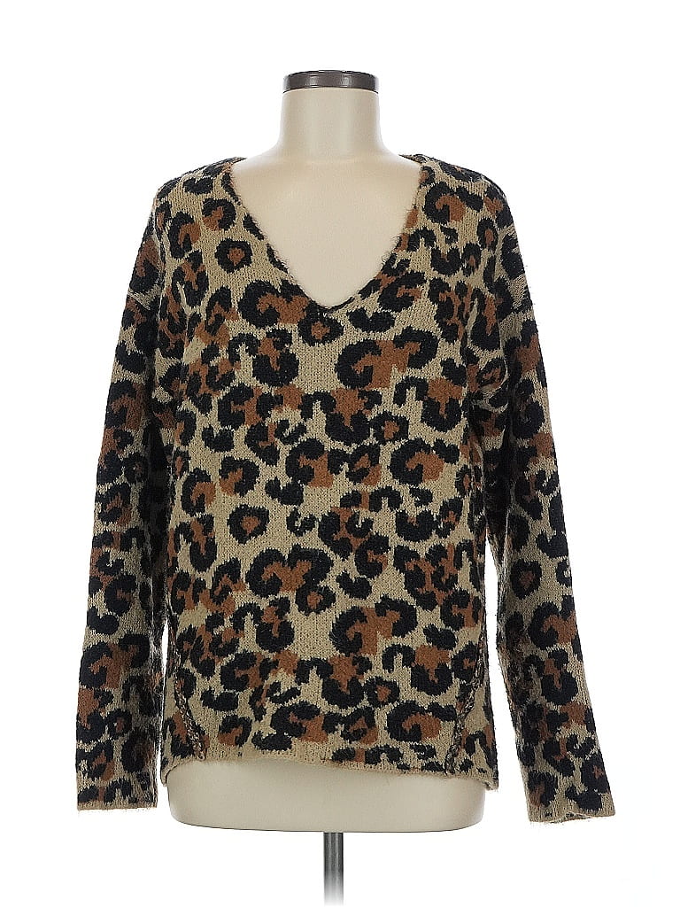 Central Park West Pullover Sweater, Size: Medium. Item Details: Brown, Animal Print Pattern, V Neck, Long Sleeve, Women's Tops, Acrylic/Nylon/Lycra