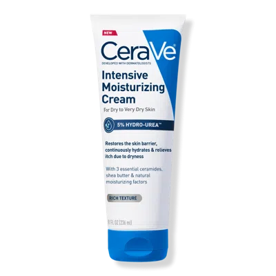INTENSIVE MOISTURIZING CREAM 8.0OZ. Benefits: CeraVe Intensive Moisturizing Cream, as its name implies, is an intense hydration cream and CeraVe's richest moisturizer for dry to very dry skin on either the face or body. Formulated with 5% Hydro-Urea (a blend of natural moisturizers), shea butter, three essential ceramides, and MVE delivery technology, it helps restore the skin barrier while providing 72-hour hydration and a flake-free, radiant glow. Suitable for all skin types and tones, including sensitive and irritated ones, skin instantly looks and feels more hydrated, smoother, and luminous. With continued twice-daily use, or as directed by a dermatologist, this intense moisturizing cream has been clinically shown to leave skin healthier-looking, softer, and more comfortable in just one week*. Improves radiance by 96%. Reduces roughness by 96%. Eliminates 98% of flaking. Soothes 99% of itchiness due to dryness. Strengthens the skin barrier by 59%. *Results based on a clinical study of 89 subjects with twice daily use on the leg after 1 week. Key Ingredients: 5% Hydro-Urea: A blend of natural moisturizing factors (NMFs) that hydrate deep within the skins surface layers. 3 Essential Ceramides: A key component of your skin barrier, which is essential for keeping moisture in and harmful elements out. Shea Butter: A natural emollient that helps soften, smooth, and improve skin radiance. Formulated Without: Fragrance.