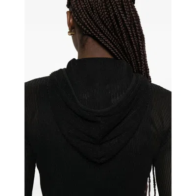 black ribbed knit front zip fastening high neck long sleeves shoulder seams