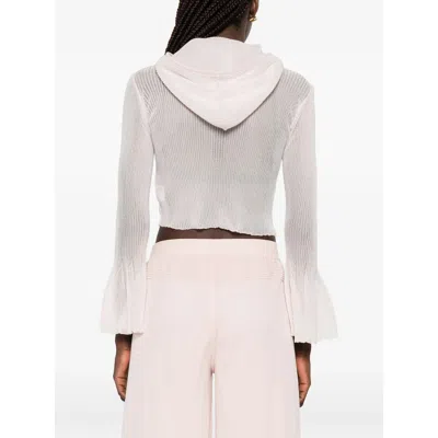 light pink ribbed knit zip fastening hooded long sleeves flared cuffs
