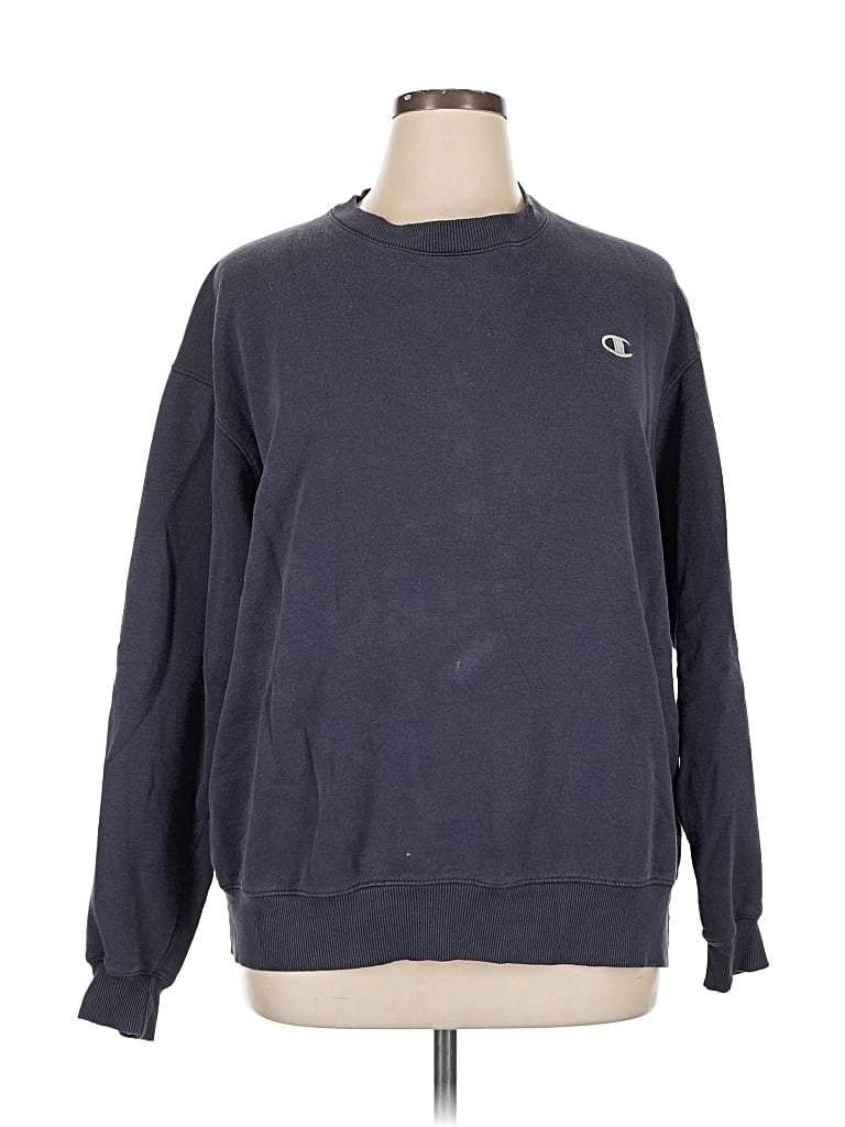 Champion Sweatshirt, Size: X-Large. Item Details: Blue, Crew Neck, Long Sleeve, Women's Tops, Cotton/Polyester