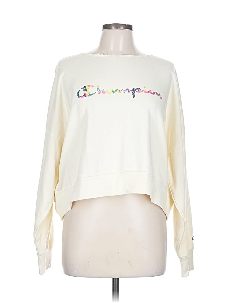Champion Sweatshirt, Size: Large. Item Details: Ivory, Crew Neck, Long Sleeve, Sequins & Rhinestones, Women's Tops, Cotton/Polyester