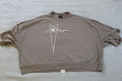 I Literally Wore This Three Times And Washed It Once. I Absolutely Love Rick Owens And These Champion Collaborations, But This One Is A Bit Too Short In Length For Me To Pull It Off Well (I'm Six Foot One), And My Belly Was A Bit Too Visible. But It's Basically Like . Measurements In The Picture; Just Hit Me Up With Any Questions Or To Negotiate (Within Reason). | Champion x Rick Owens Tommy Embroidered T-Shirt In "dust" in Beige, Men's (Size Large)