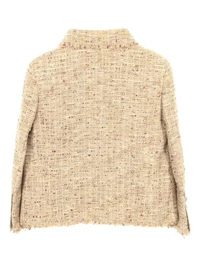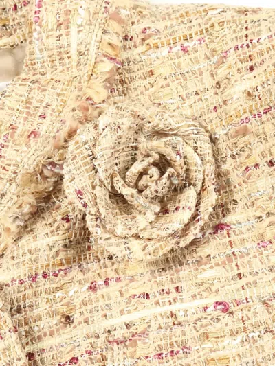 beige and multicolour tweed rose detail button closure pockets frayed trim Condition: EXCELLENT. This previously owned item is in near-perfect condition with no signs of damage or use.