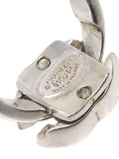 circa 2001 silver plated metal features a cc logo three dimensional design interlocking design polished finish Condition: GOOD. This previously owned and used item is in good condition with minimal signs of use. This may include fading of material or plating and scratches.