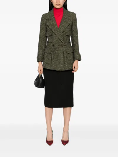 green circa 2001 double-breasted button fastening notched lapels four front flap pockets long sleeves buttoned cuffs Condition: GOOD. This previously owned and used item is in good condition with minimal signs of use. This may include fading of material or plating and scratches.