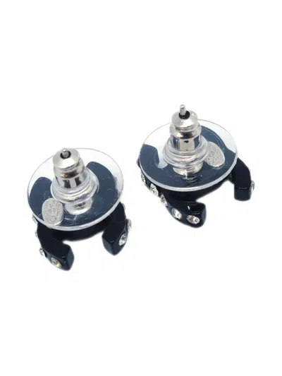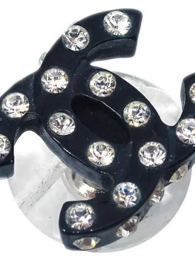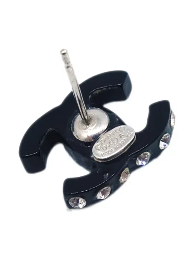 circa 2004 black silver plated signature interlocking CC logo rhinestone embellishment post-back fastening for pierced ears These earrings come as a pair. Condition: GOOD. This previously owned and used item is in good condition with minimal signs of use. This may include fading of material or plating and scratches.