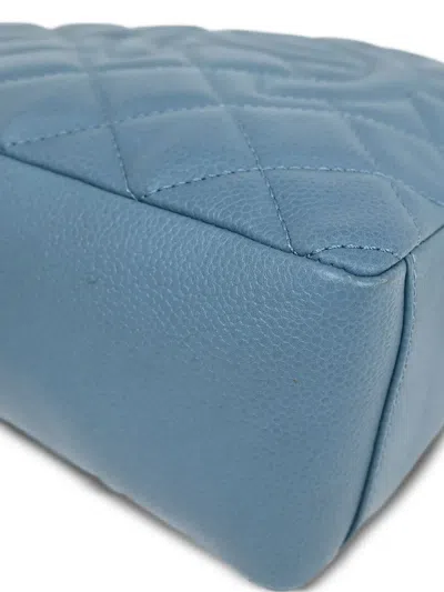 2010-2011 light blue caviar leather diamond quilting Gourmette chain strap patch pocket Serial Number: 14590069 Condition: EXCELLENT. This previously owned item is in near-perfect condition with no signs of damage or use.