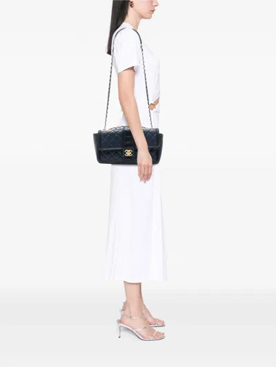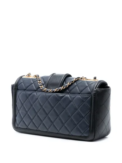 Pre-owned 2014-2015 Large Bicolor Quilted Lambskin Elegant Cc Flap Shoulder Bag In Blue