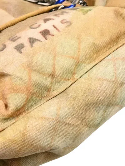 circa 2014 beige canvas graffiti print Rue Cambon Paris lettering braided chain detail rope accents serial number: 19726199 Condition: GOOD. This previously owned and used item is in good condition with minimal signs of use. This may include fading of material or plating and scratches.