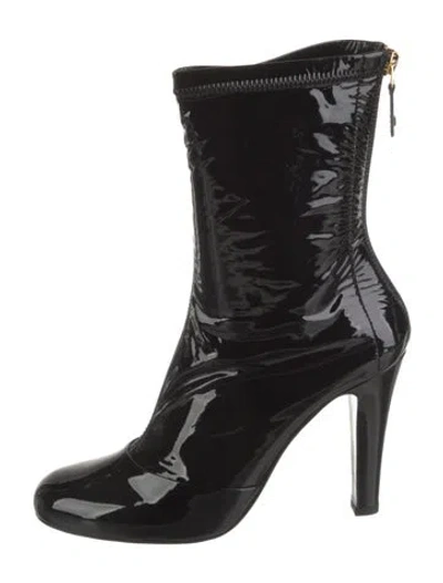 Chanel Patent Leather Mid-Calf Boots From the Fall 2015 Collection by Karl Lagerfeld Black Interlocking CC Logo Round-Toes Zip Closures at Shafts Includes Box, Dust Bag & Additional Heel Caps Fit: This style typically runs a full size small. | Chanel 2015 Interlocking CC Logo Boots in Black, Women's US7, IT37 | 7
