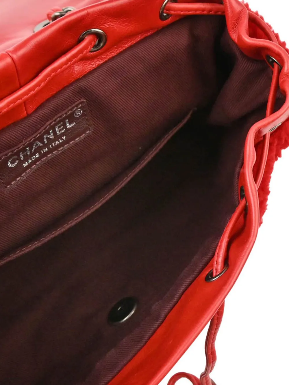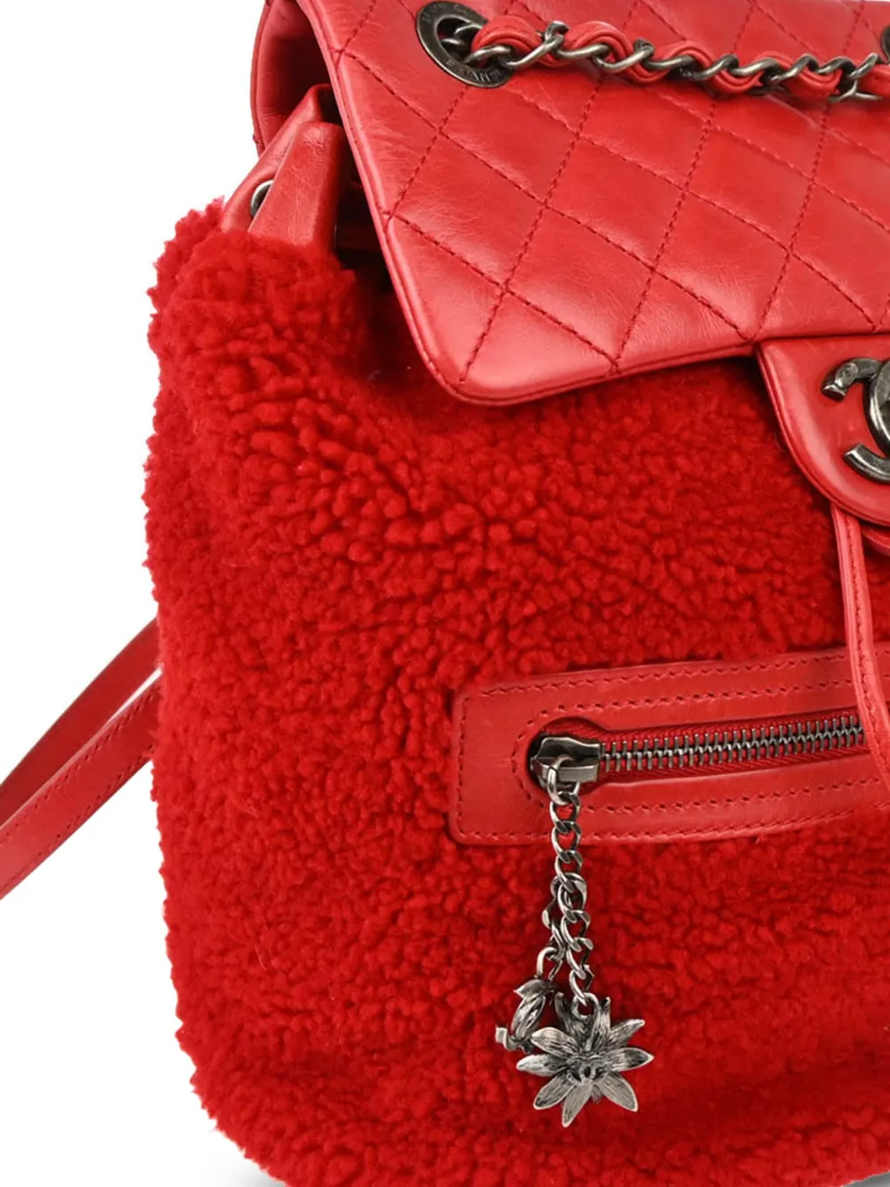 circa 2015 red sheepskin/lambskin diamond quilting two leather and chain-link shoulder straps front flap closure signature interlocking CC turn-lock fastening drawstring fastening main compartment internal slip pocket internal logo patch front zip-fastening pocket silver-tone hardware Serial Number: 21304168 This item comes with an original authenticity seal. This item comes with an original Chanel authenticity card. Condition: GOOD. This previously owned and used item is in good condition with minimal signs of use. This may include fading of material or plating and scratches.