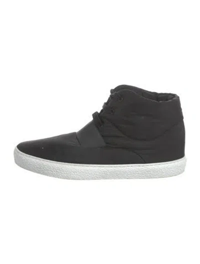 Chanel Nylon High Top Sneakers From the 2016 Collection by Karl Lagerfeld Black & White Interlocking CC Logo Leather & Rubber Trim Round-Toes Lace-Up Closure at Uppers | Chanel 2016 Interlocking CC Logo Sneakers in Black/White, Men's US11, EU44 | 11