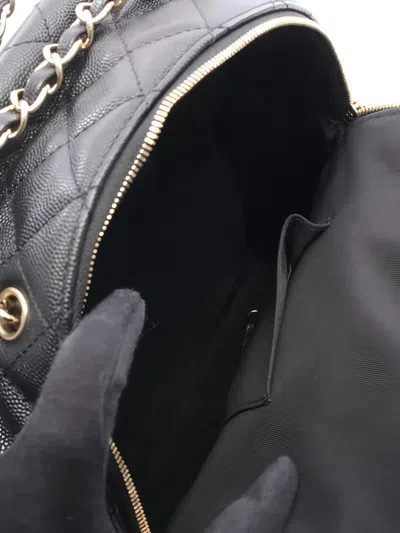 black Caviar leather Diamond quilting gold-tone hardware chain straps zip fastening front flap pocket Serial Number: 27034731 Condition: EXCELLENT. This previously owned item is in near-perfect condition with no signs of damage or use. This item comes with an original authenticity seal.