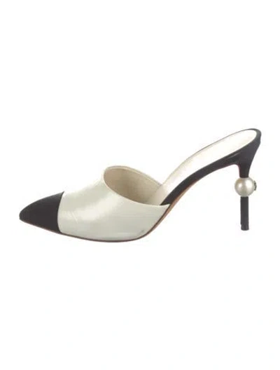Chanel Leather Mules From the Cruise 2019 Collection by Karl Lagerfeld Black & White Interlocking CC Logo & Faux Pearl Accents Beaded & Grosgrain Accents Pointed-Toes Designer Fit: This style typically runs narrow and a half size small. Unfortunately, due to restrictions, this item may not be eligible for shipping in all areas. | Chanel 2019 Interlocking CC Logo Mules in Black/White, Women's US6.5, IT36.5 | 6.5