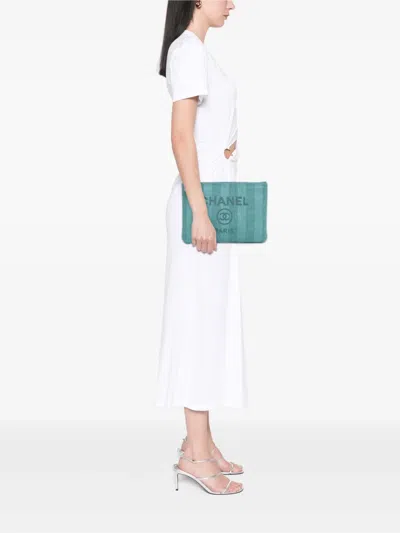 Pre-owned 2019 Medium Tweed Deauville O Case Clutch Bag In Blue
