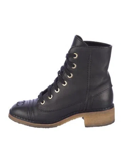 Pre-owned 2020 Interlocking Cc Logo Combat Boots In Black