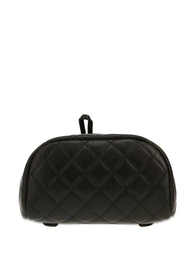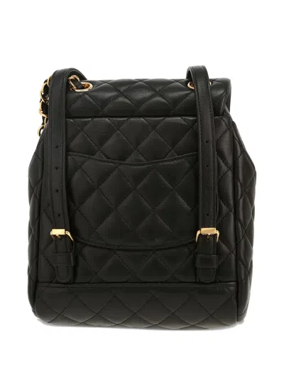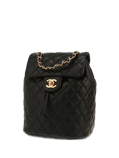 circa 2020 black diamond quilting signature interlocking CC turn-lock fastening front flap closure leather and chain-link top handle two adjustable shoulder straps rear patch pocket main compartment internal logo patch internal patch pocket