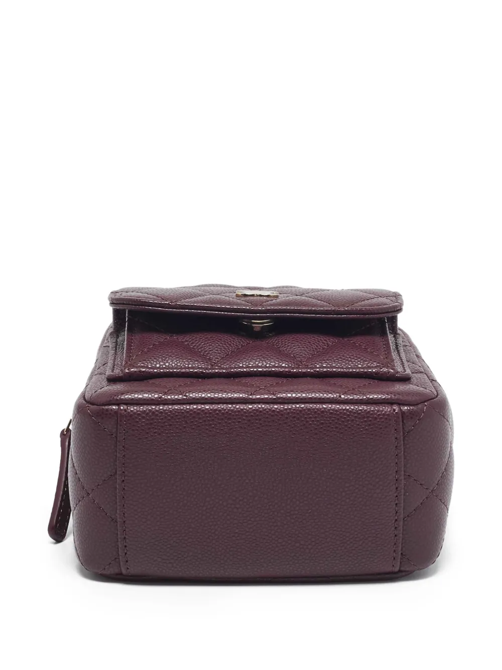 burgundy leather diamond quilting two leather and chain-link shoulder straps top zip fastening signature interlocking CC turn-lock fastening main compartment front flap pocket internal slip pocket internal logo stamp full lining gold-tone hardware Condition: UNWORN. This item is previously owned but remains unworn and in its original condition. However, it does not come with its original tags.