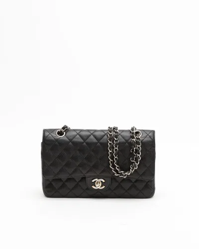 Pre-owned Classic Caviar Medium Double Flap Bag In Black