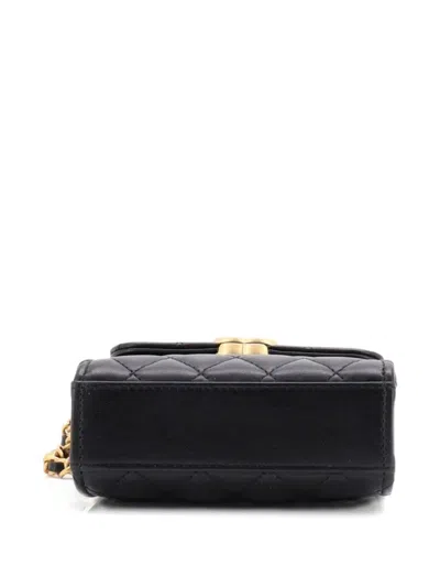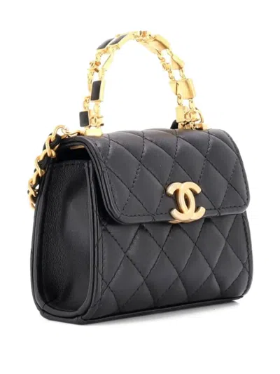 Pre-owned Coco Enamel Top Handle Flap Bag Quilted Lambskin Small Satchel In Black