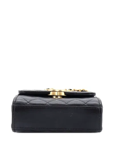 Pre-owned Coco Enamel Top Handle Flap Bag Quilted Lambskin Small Satchel In Black