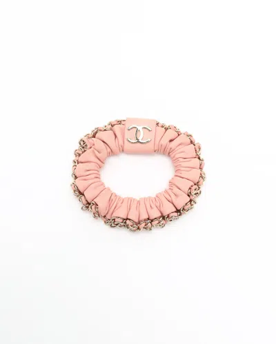CHANEL Coco Mark Leather Scrunchies• Pink leather• Silver-tone hardware• Interwoven chain detail• Chanel CC logo plaque• VintageDelivered with no accessoriesMade in FranceSerial number: 04 CDimensions:Height 0.7 cmWidth 0.7 cm