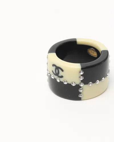 Chanel Coco Mark Rhinestone Ring- Black and white plastic hardware - Ring- CC symbol with rhinestone details- VintageOverall Preloved Condition: Very Good.Exterior Condition: Very Good. Light oxidation on hardware.Hardware: Shiny with scratches.Delivered with no accessoriesMade in FranceDimensions:Size 50Please note that the majority of our items are vintage and therefore have tales to tell unless stated otherwise. Therefore, please look at pictures, descriptions and measurements provided as they give you the best idea of the story this item has to tell.* Please note that when you buy a vintage product, the dimensions may vary slightly from a new one depending on previous care and storage.
