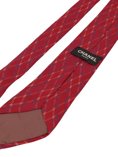 red beige and blue shades geometric pattern silk Condition: GOOD. This previously owned and used item is in good condition with minimal signs of use. This may include fading of material or plating and scratches.