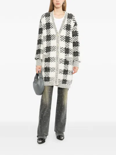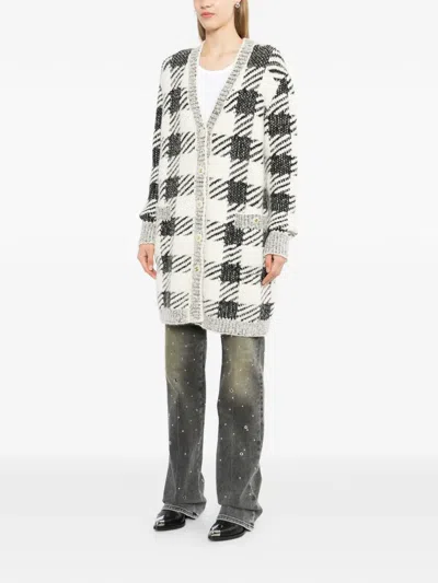 Pre-owned Houndstooth-pattern Cardigan In Neutral