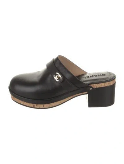 Chanel Leather Mules Black Interlocking CC Logo Round-Toes Platform Includes Dust Bag Designer Fit: This style typically runs narrow and a half size small. Unfortunately, due to restrictions, this item may not be eligible for shipping in all areas. | Chanel Interlocking CC Logo Leather Mules in Black, Women's US11, IT41 | 11