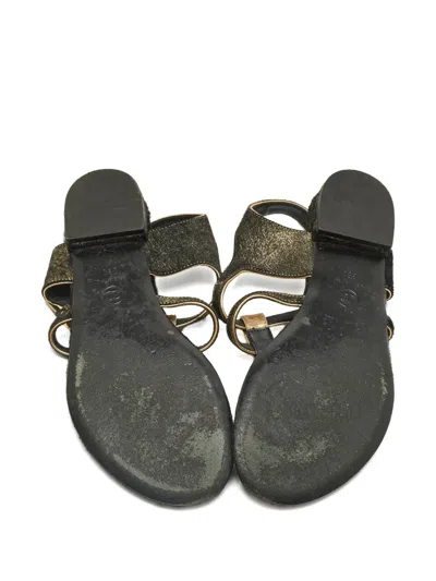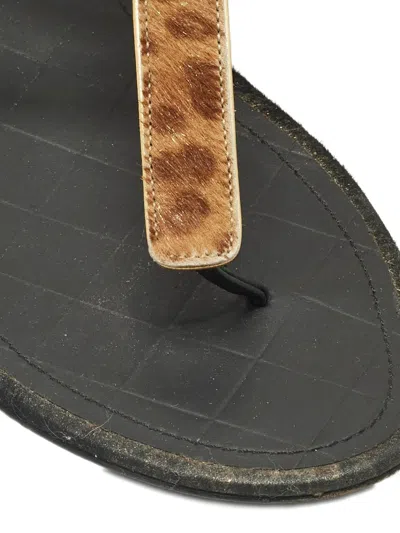 Pre-owned Leopard-pattern Leather Sandals In Black