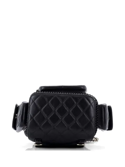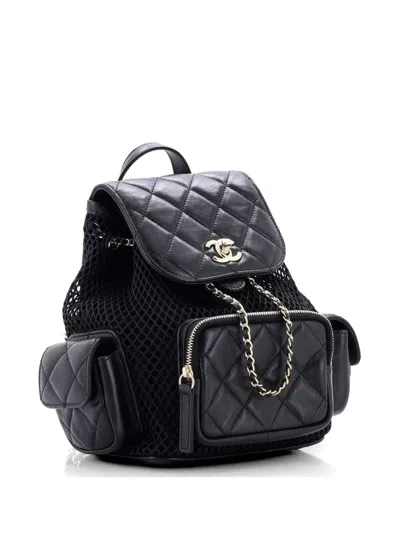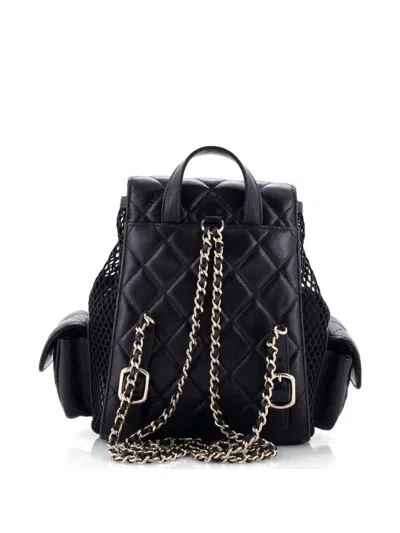 Pre-owned Multipocket Drawstring Mesh With Quilted Lambskin Small Backpack In Black