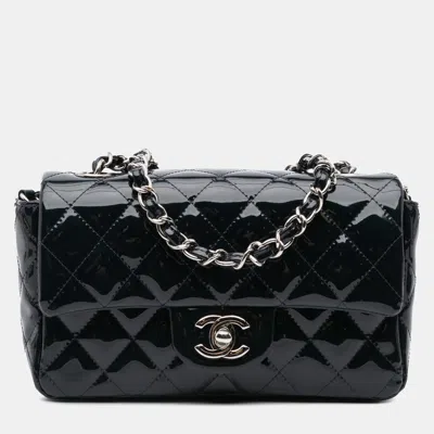 Pre-owned Navy Blue Mini Rectangular Classic Patent Single Flap
