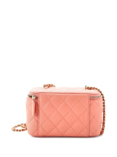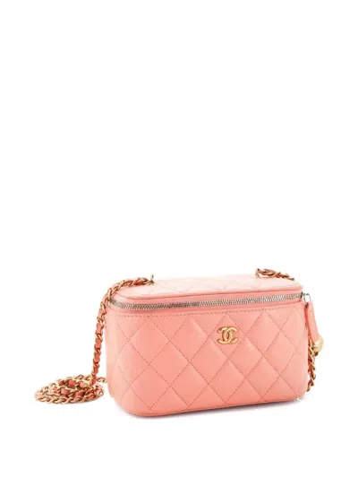 Pre-owned Pearl Crush Vanity Case With Chain Quilted Lambskin Small Clutch Bag In Pink