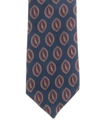 Men's navy blue and multicolor silk Chanel tie with paisley and CC pattern throughout. Made in Italy. | Chanel Printed Silk Tie in Blue