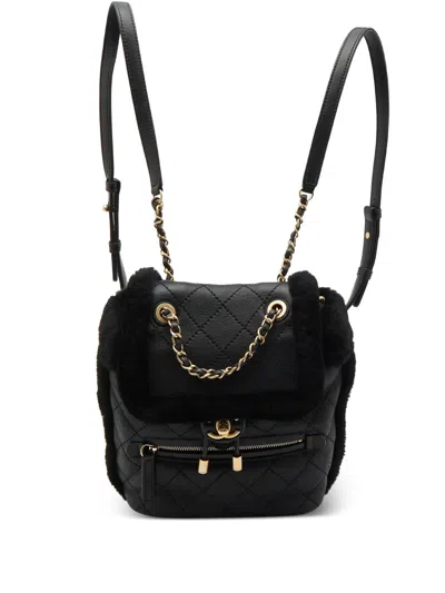 black calf leather quilted foldover top drawstring fastening two adjustable shoulder straps Condition: EXCELLENT. This previously owned item is in near-perfect condition with no signs of damage or use. This item comes with an original Chanel authenticity card.