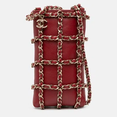Pre-owned Red Lambskin Tech Me Out Clutch With Chain