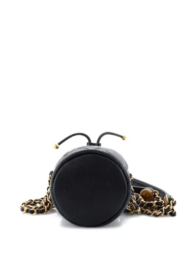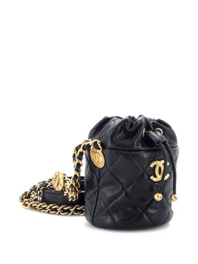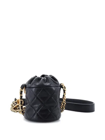 Pre-owned Twist Your Buttons Drawstring Quilted Caviar Mini Bucket Bag In Black