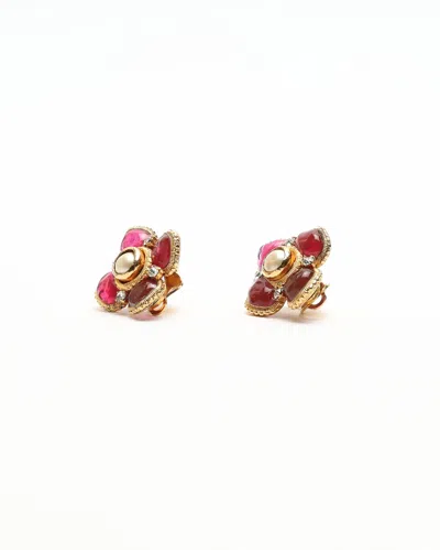 Pre-owned Vintage Rhinestone Clip-on Earrings In Multi