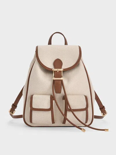 CHARLES & KEITH - Bryna Canvas Backpack In Taupe Canvas