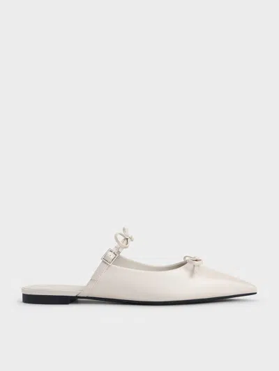 CHARLES & KEITH - Double-bow Pointed-toe Mules In White