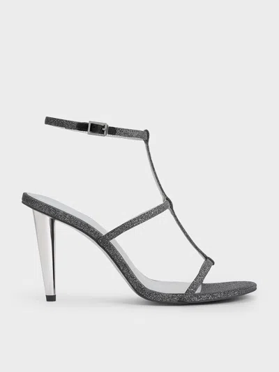 CHARLES & KEITH - Glittered T-bar Ankle-strap Sandals In Black Textured