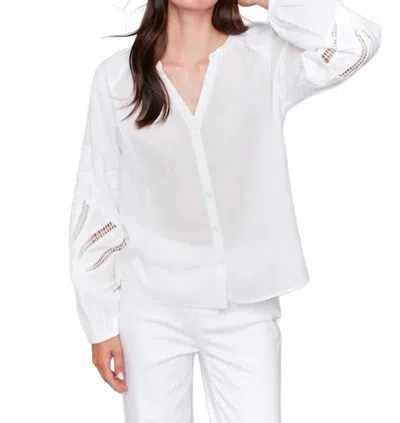 A versatile blouse that works from desk to dinner!Introducing the Button-front Blouse With Embroidery by CHARLIE B, a stylish addition to your summer wardrobe. This white long sleeve blouse features a V-neck design and exquisite embroidery on raglan sleeves, exuding elegance and comfort. Crafted from 100% cotton, it includes a button-front closure and measures a 23-inch back length from the medium size. Care - Wash at a delicate setting in cold water, do not bleach, hang to dry, iron at a low setting, and dry clean if needed.