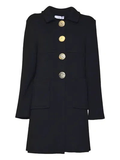 CHARLOTT Tailored Blue Coat With Structured Collar And Distinctive Button Detail In Black