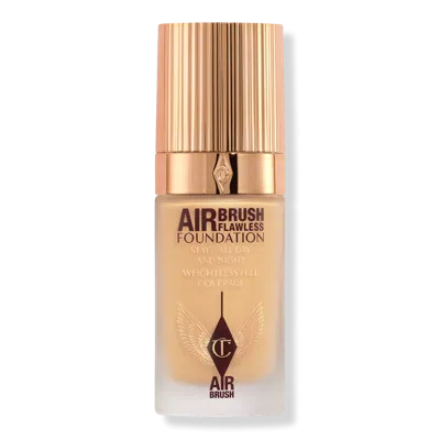 AIRBRUSH FLAWLESS FOUNDATION RENO 6 WARM. Benefits: Light-as-air, 7-in-1 foundation. Targets blemishes, redness, visible pores, fine lines, hyperpigmentation, uneven skin, and dark circles all in one pump!. Powered by Powder Blur AIRTech for intensified smoothing, blurring, and retexturizing. It's Charlotte's Airbrush Powder effect, bottled!. Key Ingredients: Biomimetic Second-Skin Tech TM: Enhances long-lasting wear of foundation for a waterproof, transfer-proof, life-proof coverage!. Powder Blur Airtech TM: Light difussing powders smooth, blur, retexturizing effect that instantly minimizes the apperance of fine lines, wrinkles, pores & shine. Phytoyouth Essence TM: Targets visible signs of aging, including fine lines, hyperpigmentation, and uneven skin texture. Research Results: 9 out of 10 people would switch to this foundation!* 90% enjoyed a 24-hour stay-true colour match*. 95% experienced a breathable second-skin feel*. 97% agree their skin looked and felt smoother and instantly hydrated*. 93% saw the look of their skin improving every time they wore it*. 97% agree it covered the appearance of pigmentation, dark spots, blemishes and scarring*. 93% agree their skin looked airbrushed, with the highest yet most weightless coverage they have tried*. 94% looked and felt flawless*. *Tested on 305 people over 8 weeks.