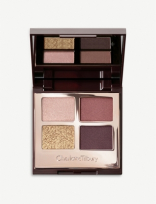 Charlotte Tilbury Luxury Eyeshadow Palette in The Vintage Vamp - Beauty: NA. Size all. Charlotte Tilbury's Luxury Palette in The Vintage Vamp is an eyeshadow quad of purple-red toned shades in a pale shimmer, ruddy plum, deep burgundy and a peach-toned gold glitter to make you stand out from the crowd! A four-step eyeshadow quad with buildable, non-creasing formula and pigmented shades for day to night. Each palette contains four harmonious eye colors: Prime, Enhance, Smoke, and Pop. Create a smooth base for your eye look using the Prime shade; build up definition with Enhance; add drama with the Smoke shade; and finish your dazzling look with the shimmer Pop shade.. In The Vintage Vamp. Cruelty-free. Formulated without parabens. 5.2 g / 0.18 oz. For a softer daytime look, apply the Prime shade all over your eyelid, using a blender brush. Pop a little in the inner corners to open up your eyes.. Blend the Enhance shade from the outer corner across the crease of your eyelid. Finish off with a daytime mascara for a quick, easy application suitable for work or a day date.. To amp it up for evening, repeat the first steps, then blend the Smoke shade from the outer corner of the eye using a smudger brush. Apply across the upper and lower lash line for a more intense gaze. For a night time look, apply the sophisticated Pop . CTIL-WU383. EQAD52DX6R. With over 28 years of experience, Charlotte Tilbury has distinguished herself as a true creative visionary and innovator. She has revolutionized the face of the global beauty industry by decoding her expertise into transformative makeup tricks and tools that are easy to use, easy to choose and easy to shop, for everyone at every age. Charlotte believes that everyone deserves to look and feel like the most beautiful version of themselves every day through the power of makeup. Today, Charlotte is one of the UK's most famous makeup industry exports and continues to push boundaries with her award-winning, record-breaking, eponymous, universally-loved makeup and skincare company.